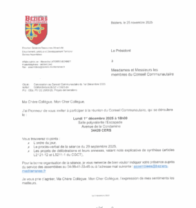 La séance du conseil communautaire se tiendra Lundi 1er décembre 2025 à 18h, à la salle polyvalente l'Escapade à Cers.