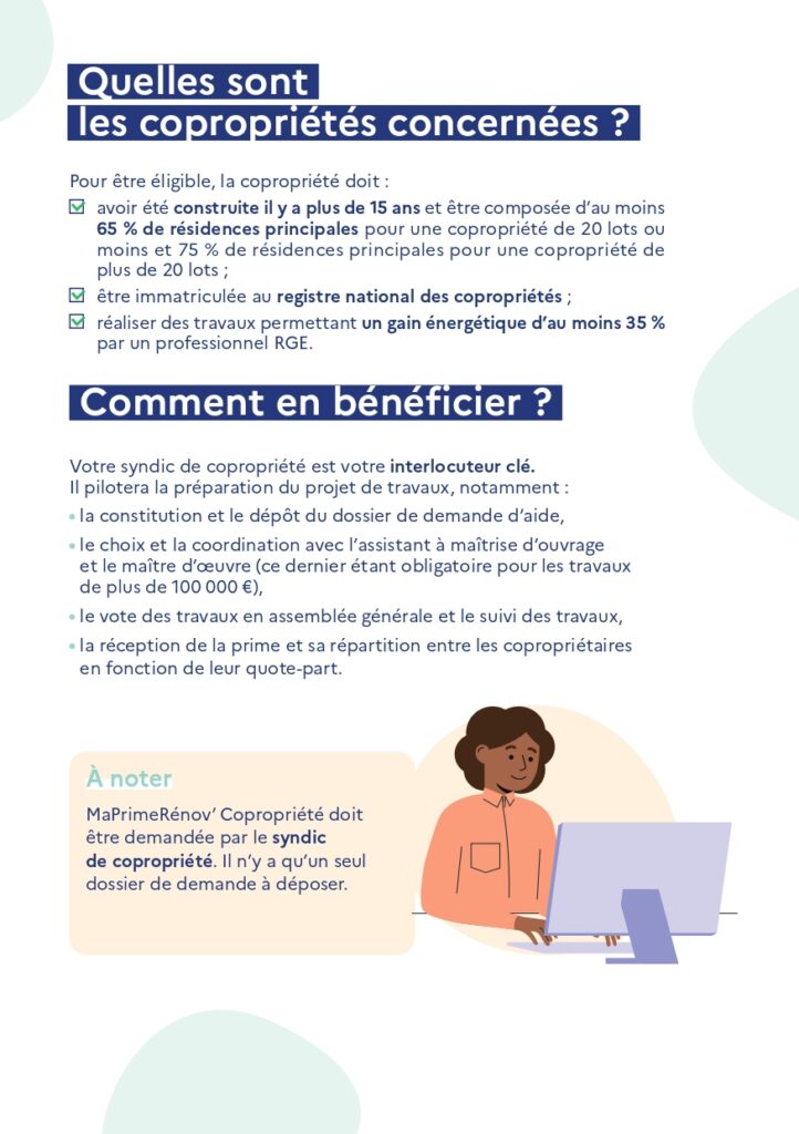 Les syndicats de copropriétés peuvent également être éligibles aux aides financières, s’ils réalisent des travaux d'économie d'énergie dans les parties communes d'un immeuble.